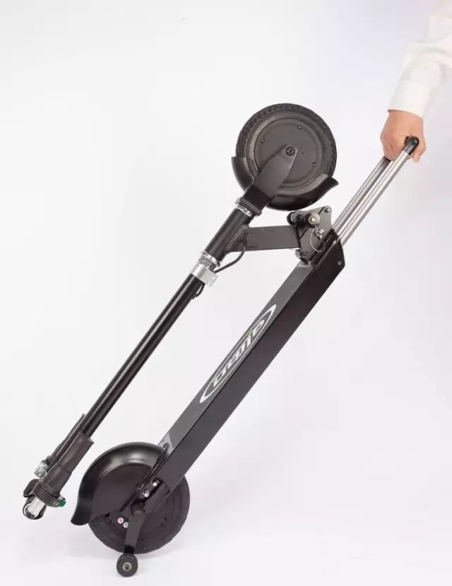 倒数第二款是针对城市通勤族的Glion Dolly电动滑板车。其特点是携带便捷,能够一秒折叠,然后像拖着行旅箱一样行走。
