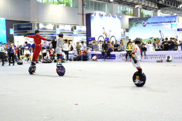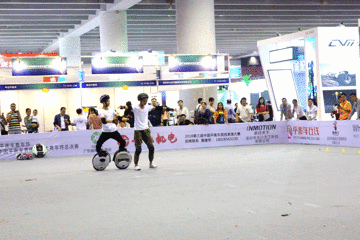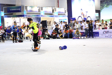 大众熟悉的业内知名玩家兼主持人阿枫为现场的观众介绍了平衡车竞技大赛的规则,并宣布独轮车个人竞赛即将开始。