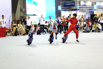 九鼎平衡车俱乐部的三人带来了单人双轮表演。