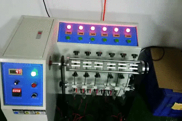 线材吊重(砝码)摇摆实验,用于模拟共享滑板车电源线材及端子在数千次弯曲折叠后,通电性能是否正常,有无开路或者接触不良。只有严格经过摇摆模拟的产品,才可以有效保证用户在实际使用环境中的各种弯折扭曲操作,其产品性能依然良好。