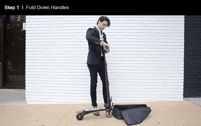 - 折叠车身,放入背包