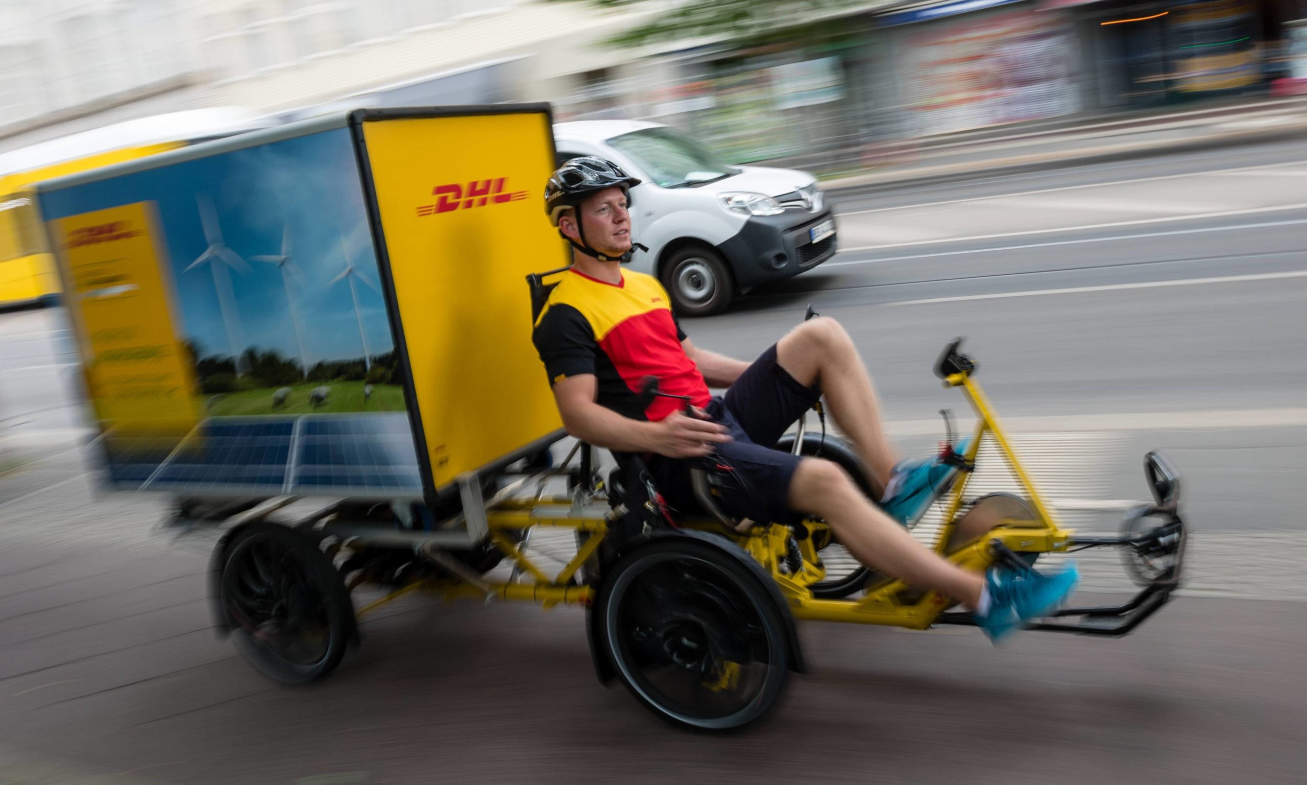 也有厂商对大型货运自行车的骑行体验进行创新,荷兰邮政投递服务就引入了 Cubicycle 一款货运车型,让快递员实现躺着送货的理想生活。