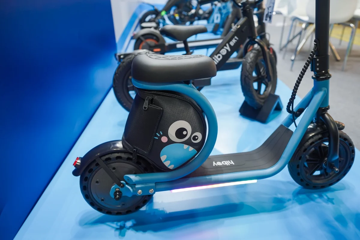 Hiboy展台以电动滑板车为主,针对儿童市场的产品增加了彩灯装饰,以及卡通外形储物包增加储物空间。