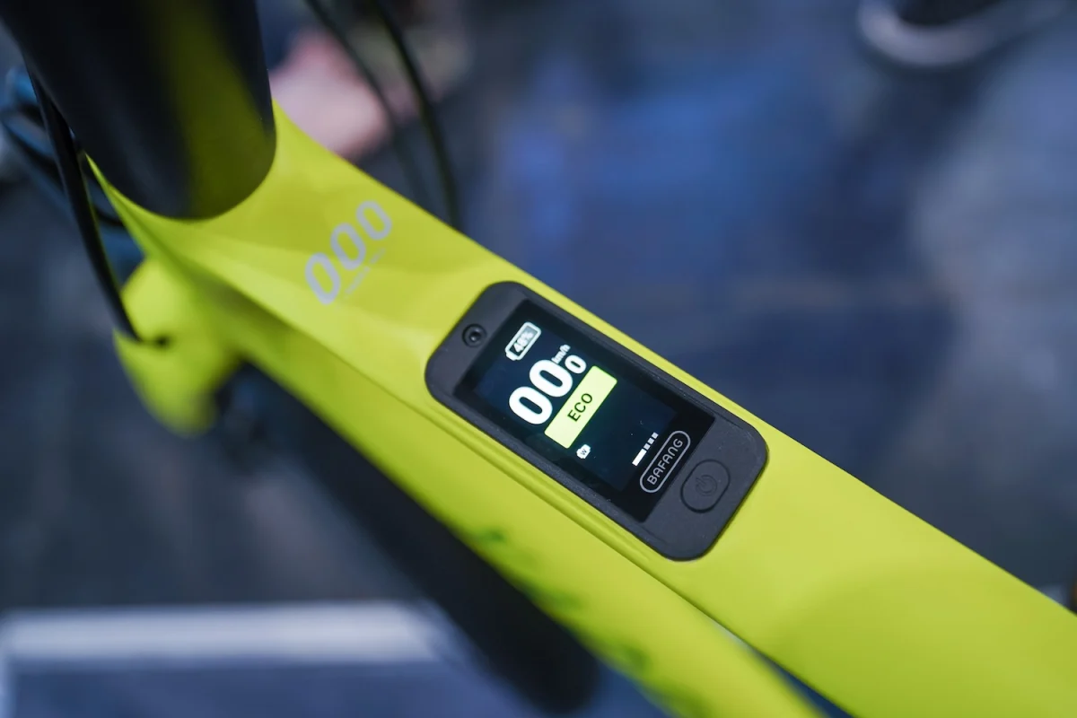 内嵌在上管的智能仪表和车架相当贴合,车把手左侧有智能控制按键,可调节5 档助力模式,满足不同场景下的骑行需求。